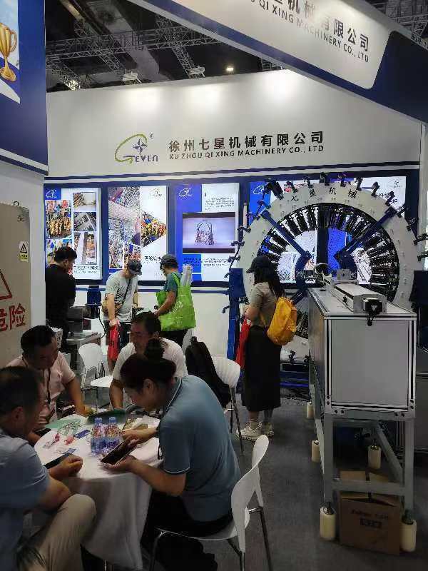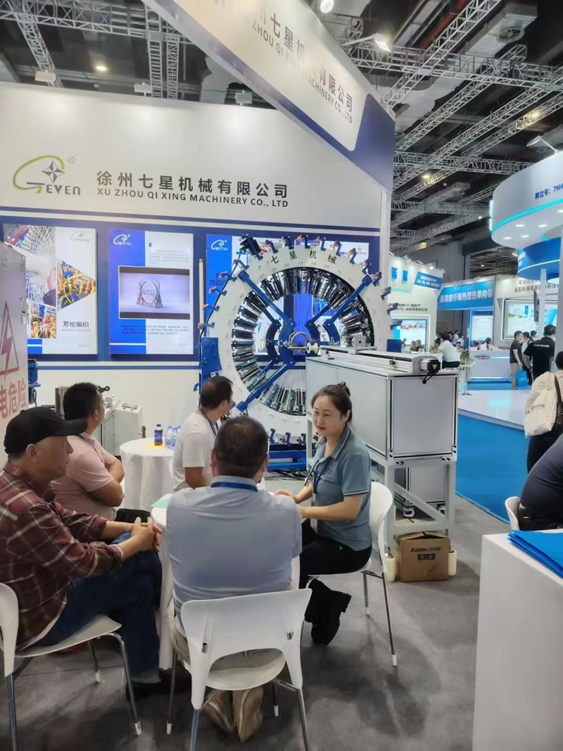 在本次展覽會,徐州七星機械有限公司展出設(shè)備臥式110-48錠高速編織機,復(fù)繞機,內(nèi)曲面編織機。