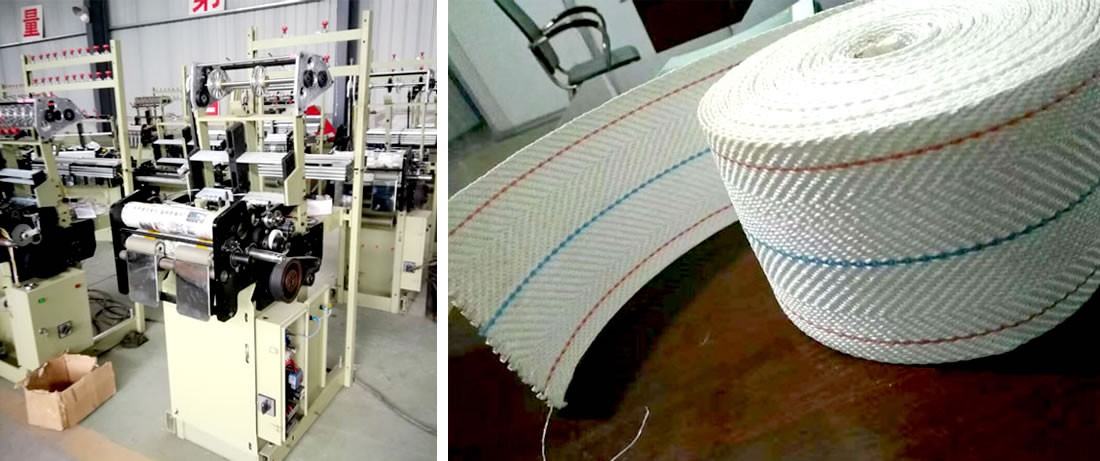本機臺用于生產各種PP帶,棉帶,安全帶,松緊帶等加寬,加厚的窄幅織物