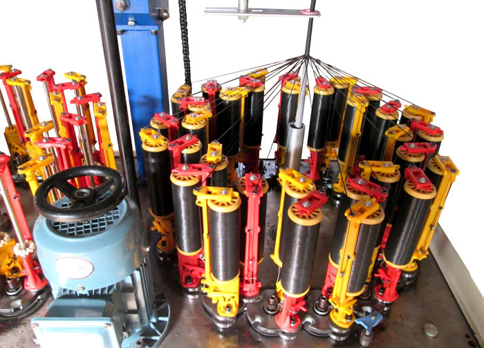 我公司生產(chǎn)的90系列編織機被廣泛的用于編織各種圓或者扁的繩帶(鞋帶、手提帶、拖車繩、行李繩、釣魚線、裝飾繩、高空強力繩、松緊帶等)和電線電纜(高溫導(dǎo)線、屏蔽線、布花線等),高壓膠管(氧氣、乙炔管、高壓油管、噴霧管等),復(fù)合材料骨架編織(碳纖維、玻璃纖維),小型盤根,汽車線束。