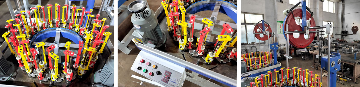 我公司生產(chǎn)的90系列編織機被廣泛的用于編織各種圓或者扁的繩帶(鞋帶、手提帶、拖車?yán)K、行李繩、釣魚線、裝飾繩、高空強力繩、松緊帶等)和電線電纜(高溫導(dǎo)線、屏蔽線、布花線等)