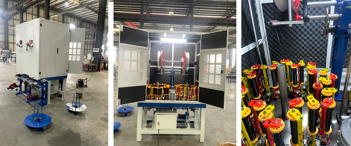 帶收卷帶放線架 (配套兩個500工字輪) 編織膠管 ,含收線放線中心芯管。電壓380V,三相 變頻器為易能。全封閉封閉罩。90彈錠 ,紗管尺寸47*142??衫p繞膜密封,掛線出廠。